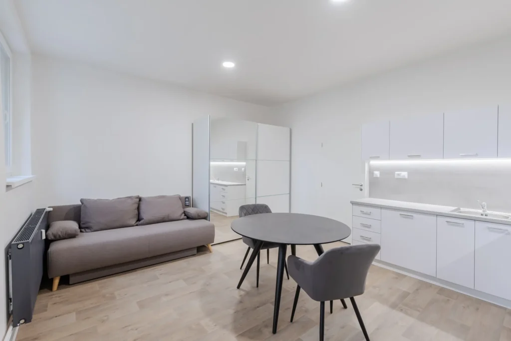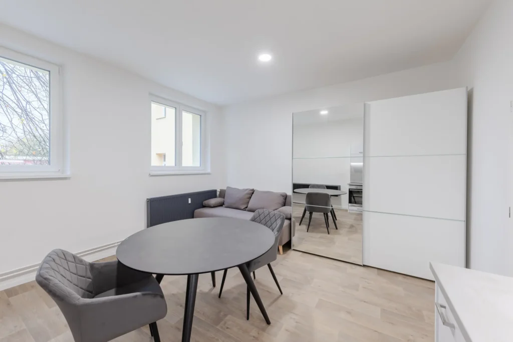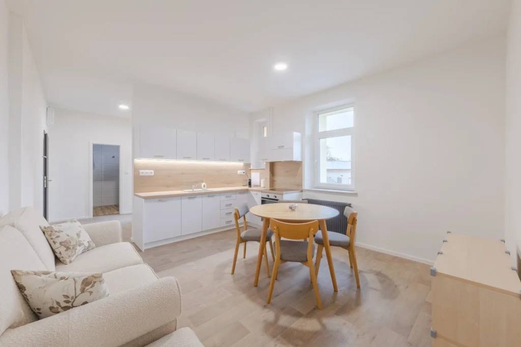 Každý byt je navržen pro efektivní využití všech metrů čtverečních s důrazem na kvalitu a komfort bydlení. Součástí vybavení jsou nové kuchyňské linky na míru včetně spotřebičů Mora, koupelny značky Elements s možností individuálního dovybavení.